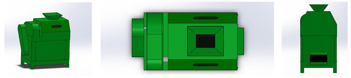 2.傳動(dòng)聯(lián)接部分:本機(jī)由電動(dòng)機(jī)驅(qū)動(dòng)皮帶輪、三角帶、減速機(jī)傳動(dòng),使機(jī)頭工作。另有鏈輪、鏈條組成傳動(dòng)鏈傳遞給破碎分離工作部分。其中減速機(jī)與機(jī)頭工作部分,用尼龍柱銷(xiāo)式聯(lián)軸器傳遞驅(qū)動(dòng)。