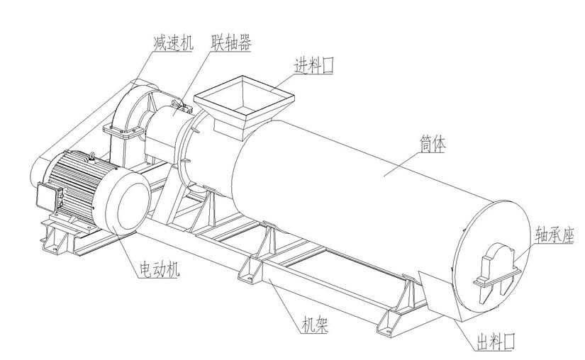 本機(jī)是將粉狀原料加工成顆粒的一種設(shè)備,適用于有機(jī)無機(jī)復(fù)混肥等高含氮量產(chǎn)品。 結(jié)構(gòu):本機(jī)由機(jī)架、滾筒、